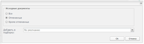 В появившемся диалоговом окне необходимо выбрать записи (все, отмеченные или кроме отмеченных), а так же выбрать подборку в которую необходимо добавить выбранные записи и нажать кнопку «Ok».