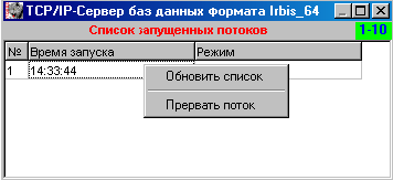 НАЧАЛО >> TCP/IP сервер ИРБИС 64/128 >> Пользовательский интерфейс сервера ИРБИС64 >> Список запущенных потоков сетевого чтения-записи